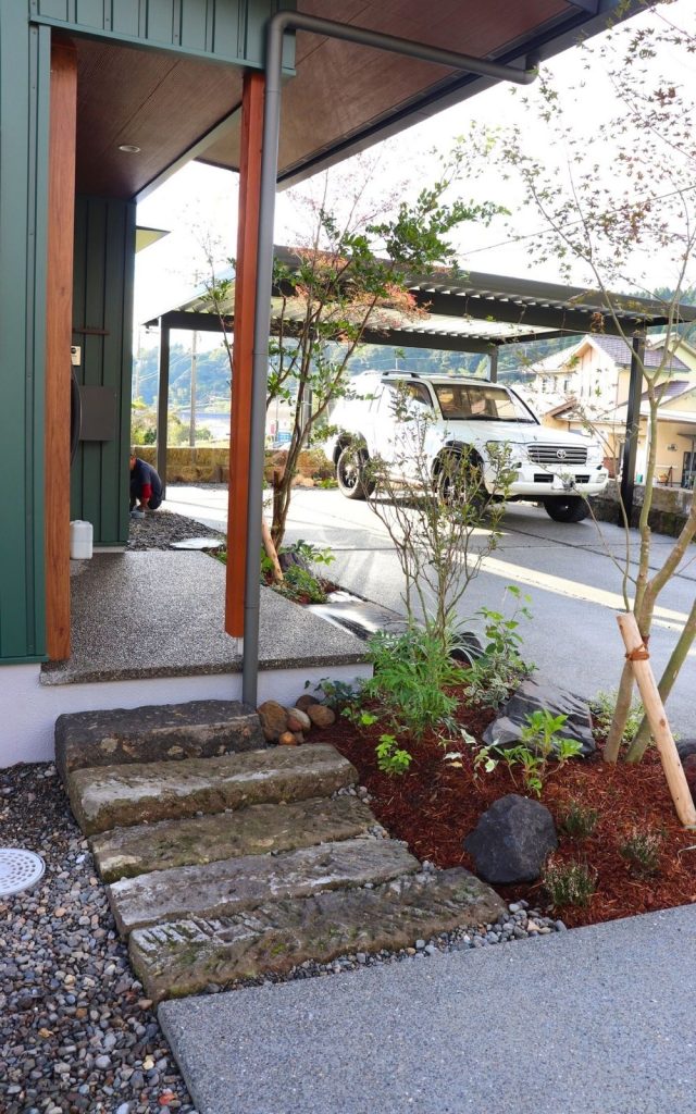 霧島溶岩石を使い、土地から出た石で小道アプローチ